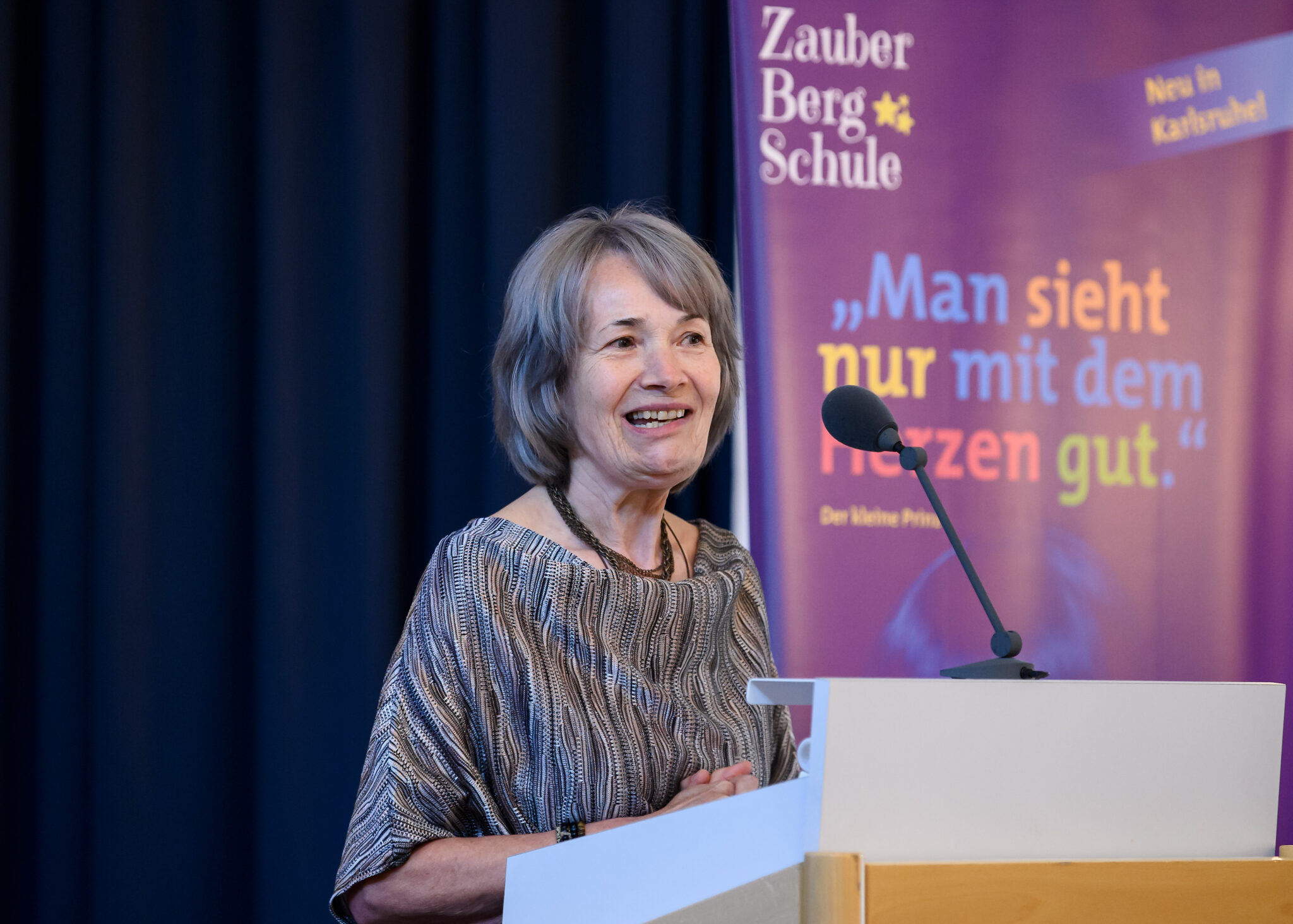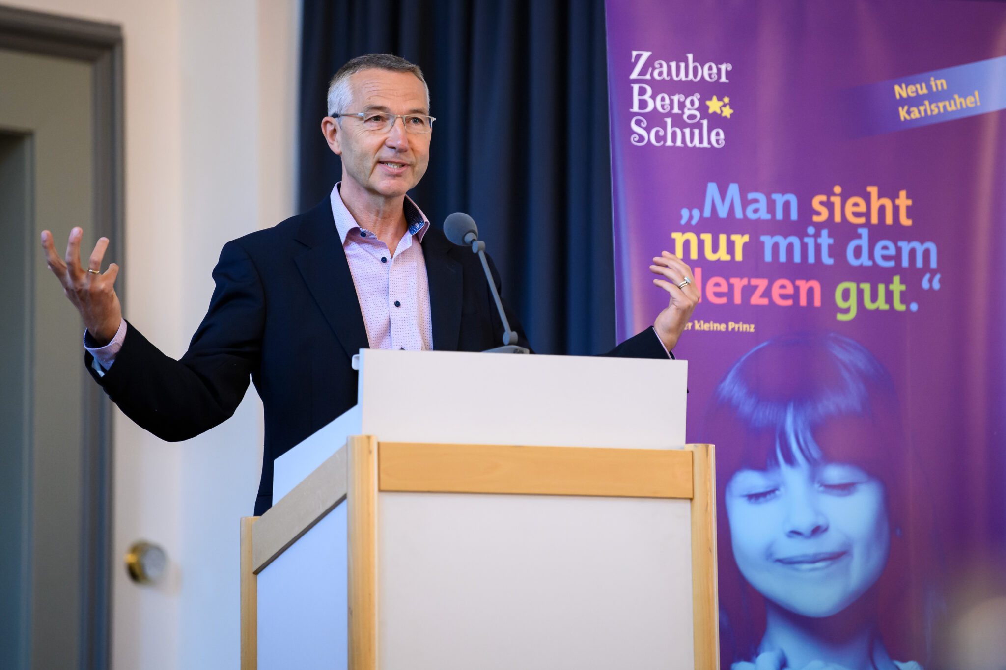 Bürgermeister Martin Lenz in seinem Begrüßungswort spontan mit allen Meilensteinen der Pädagogik in Person, Werk und Wirkung in Verbindung gebracht wird. Seiner Anerkennung des Engagements der Initiatoren der ZauberBergSchule und seiner Darstellung der konstruktiven Zusammenhänge in der Bildungslandschaft Karlsruhe, folgt begeisterter, zustimmender Beifall.
